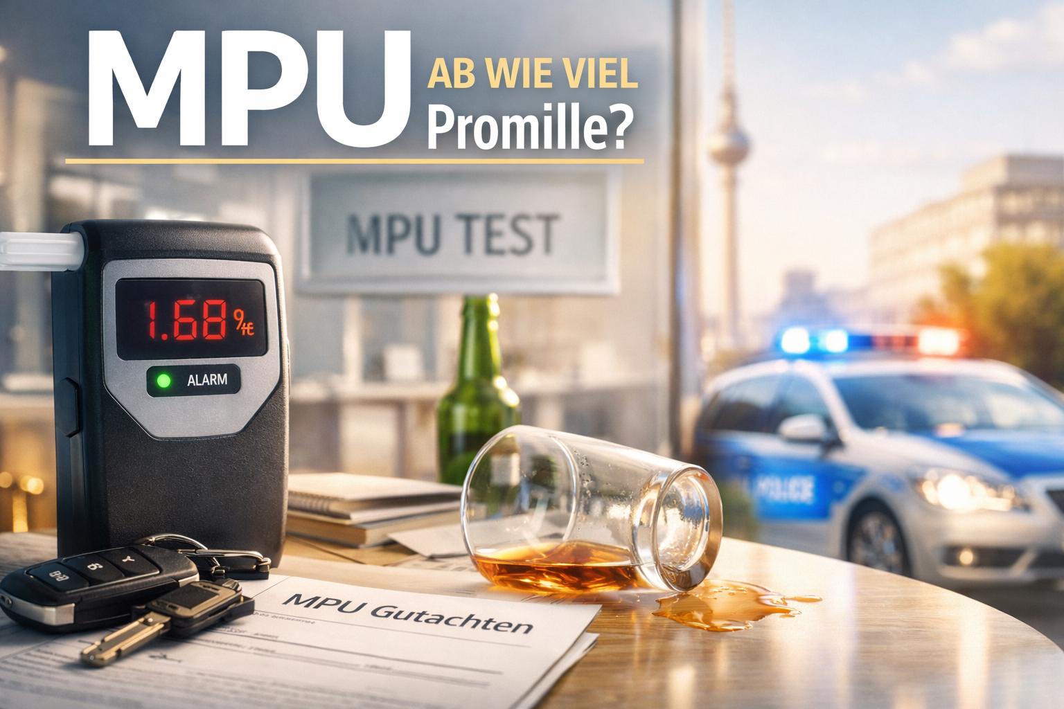In Deutschland gelten auch 2026 unverändert strenge Promillegrenzen im Straßenverkehr. Schon geringe Alkoholwerte können ernste Folgen haben. Neben Bußgeldern und Punkten drohen Fahrverbot oder sogar der Entzug der Fahrerlaubnis. Besonders wichtig ist die medizinisch-psychologische Untersuchung, kurz MPU. Ab einem Wert von 1,6 Promille ist sie immer vorgeschrieben. Das gilt unabhängig davon, ob ein Auto, Fahrrad oder E-Scooter genutzt wurde. Der folgende Ratgeber erklärt alle Promillegrenzen, rechtlichen Konsequenzen und Sonderfälle verständlich und vollständig.